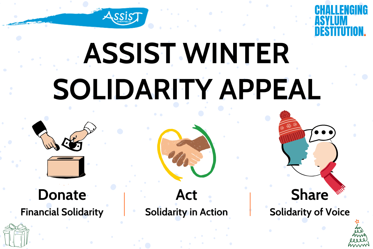 - Partner with us: Help build a coalition of solidarity in Sheffield. Invite us to speak at your community group, event, faith organisation, or University society. Email us today: communityandevents@assistsheffield.org.uk