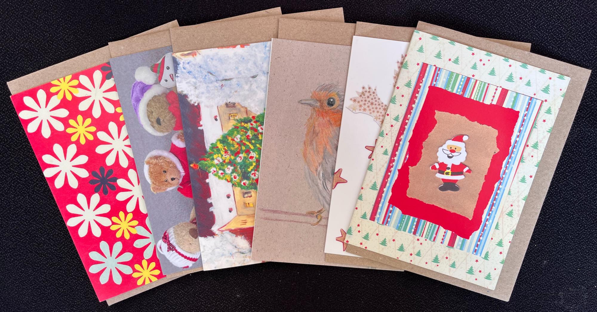 Each pack includes a variety of beautiful Christmas cards with envelopes, featuring a selection of designs as shown in the photos on this page.