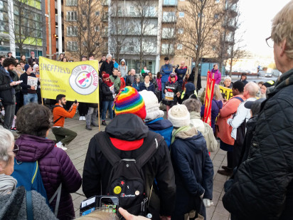 Around 200-300 people demonstrated outside Vulcan House..